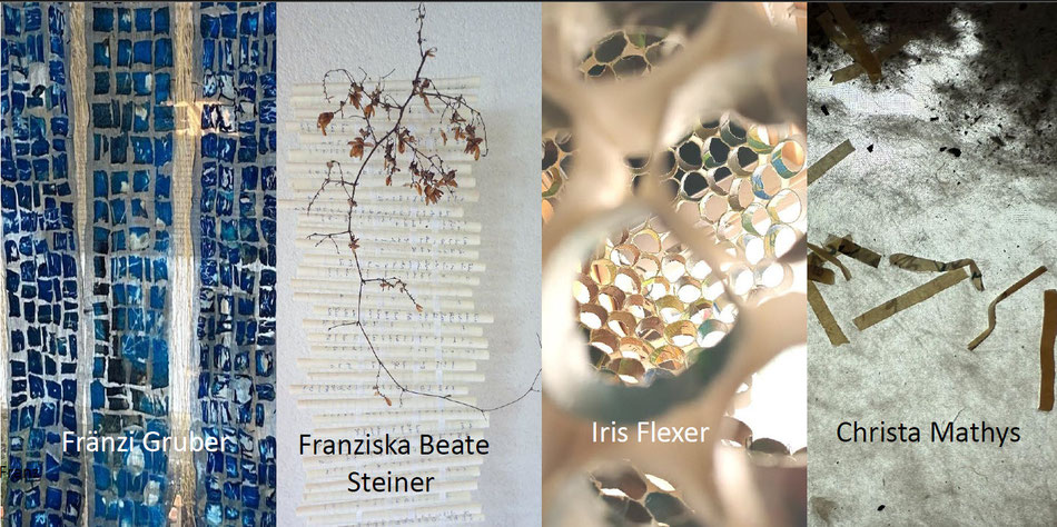 Die 4 Künstlerinnen Iris Flexer, Stuttgart, Fränzi Gruber, Düdingen, Christa Mathys, Bern und Franziska Beate Steiner, Meiringen treffen sich 3mal im Jahr zum gemeinsamen Austausch und Arbeiten in den Ateliers in der Schweiz und in Stuttgart.